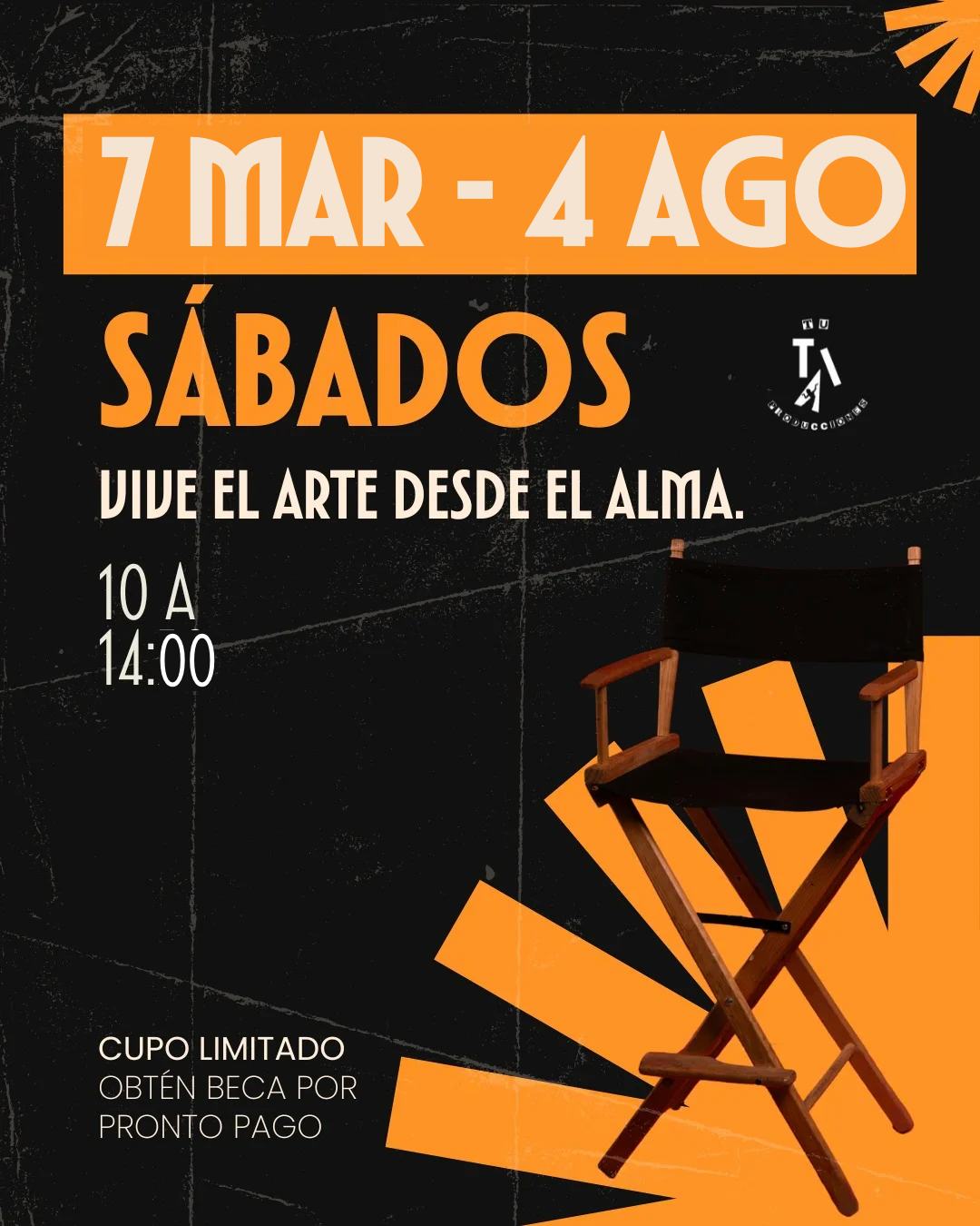 • Cubrir el pago por concepto de inscripción y primer mensualidad al Taller de actuación hasta antes del 28 de febrero del 2025